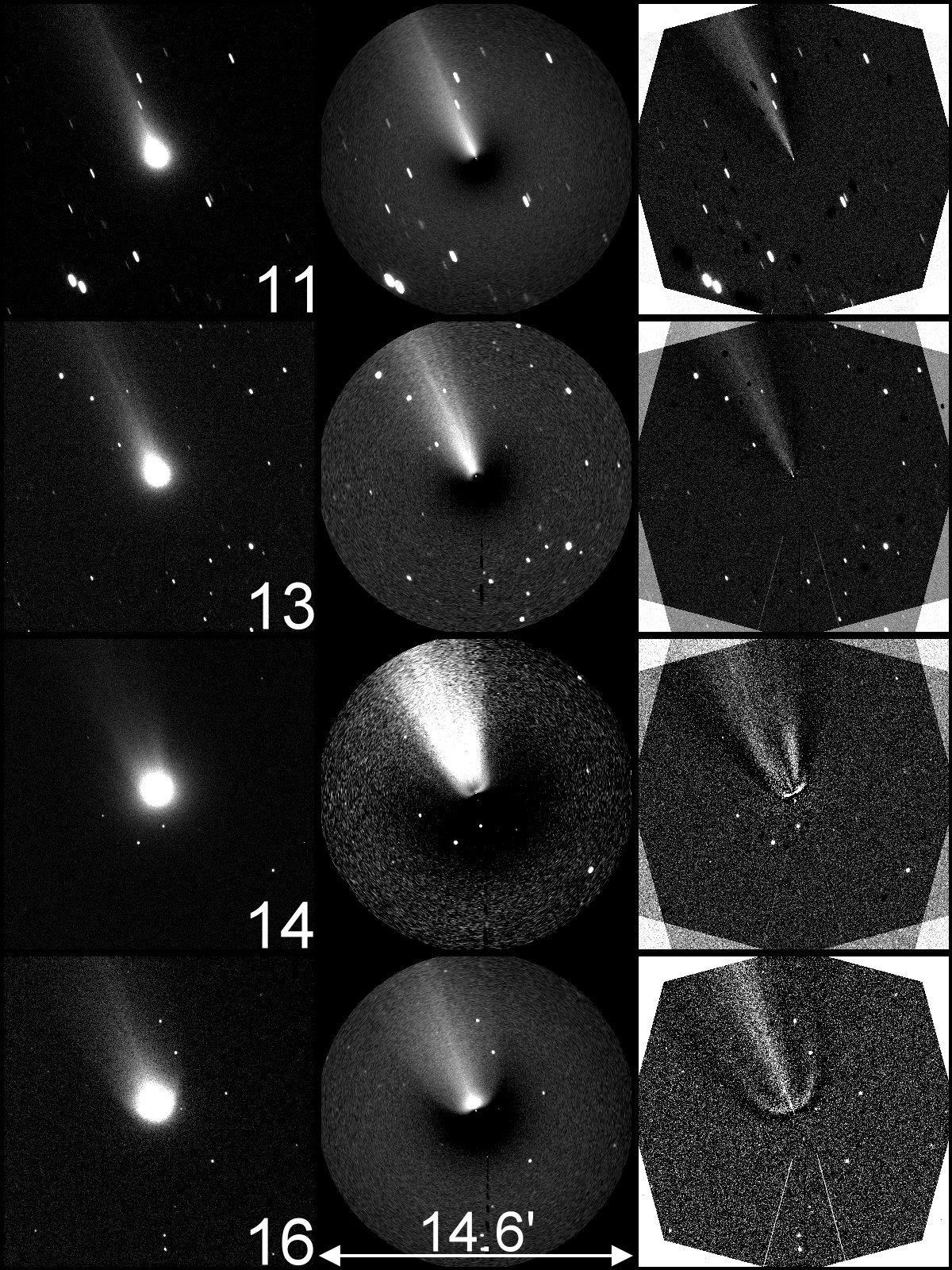 上星期11月14日在全球觀測網的互通訊息中,得知彗星有爆發的現象產生,其亮度約增亮兩個星等已達肉眼可見的六等,彗星中心的彗髮也產生了一些新的噴流(如圖一),這些新的噴流像彗星的翅膀讓艾桑彗星飛進全世界天文迷心中,尤其是人口居多的北半球已經許久沒有見到如此壯觀的彗星了;我們比較這些新的噴流並發現與彗星麗妮兒(C/1999 S4 (LINEAR))在2000年七月時的影像相似(圖二)當時彗星在通過其近日點後就完全分解消失了! 但目前艾桑彗星尚未找這分裂的證據,不過11月14日恰有一個CME(日冕物質噴發 (Coronal Mass Ejections,簡稱CME))穿過艾桑彗星,可能是造成艾桑彗星的彗尾(離子尾)有多樣性的呈現(例如分叉)(圖三)。